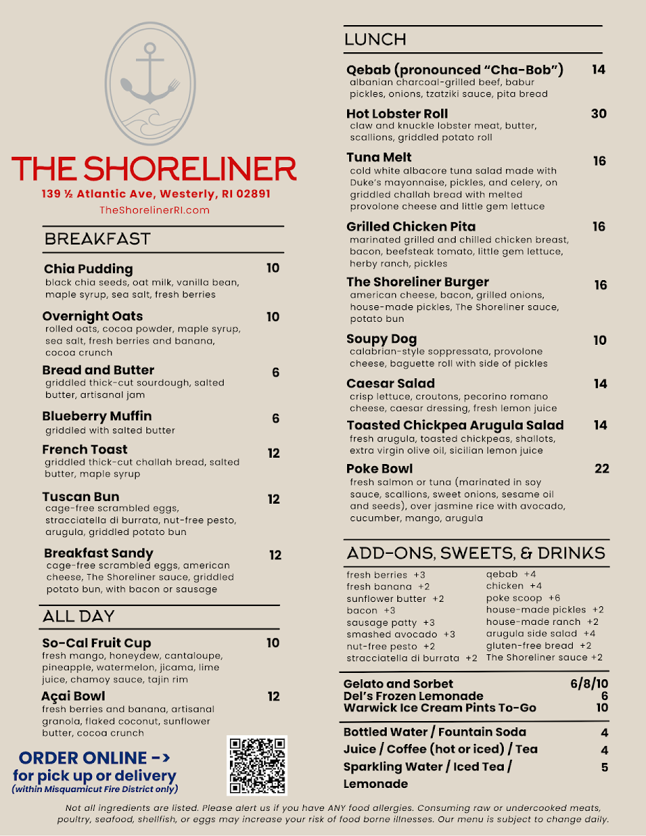 If you're in the mood for a meal that hits the spot, you’ve got to check out The Shoreliner Menu. Located at 139 1/2 Atlantic Ave in Westerly, RI, this spot has something for everyone. Whether you're craving a casual bite with friends or a special dinner, the menu brings together fresh, local ingredients with a variety of dishes to suit all tastes. From seafood that's as fresh as it gets to hearty comfort food, every dish is crafted with care. You’ll find classic favorites like succulent shrimp and crispy fries, alongside innovative specials that rotate with the seasons. And if you’re in the mood for something sweet, their dessert selection is always worth saving room for. It’s a place that feels like home, where every meal is a celebration of flavor and good company.